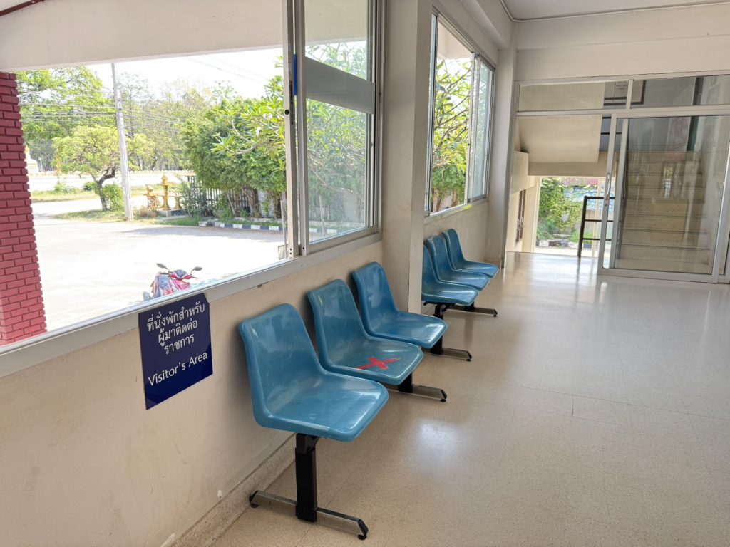 มีบริการน้ำดื่มและเก้าอี้นั่ง